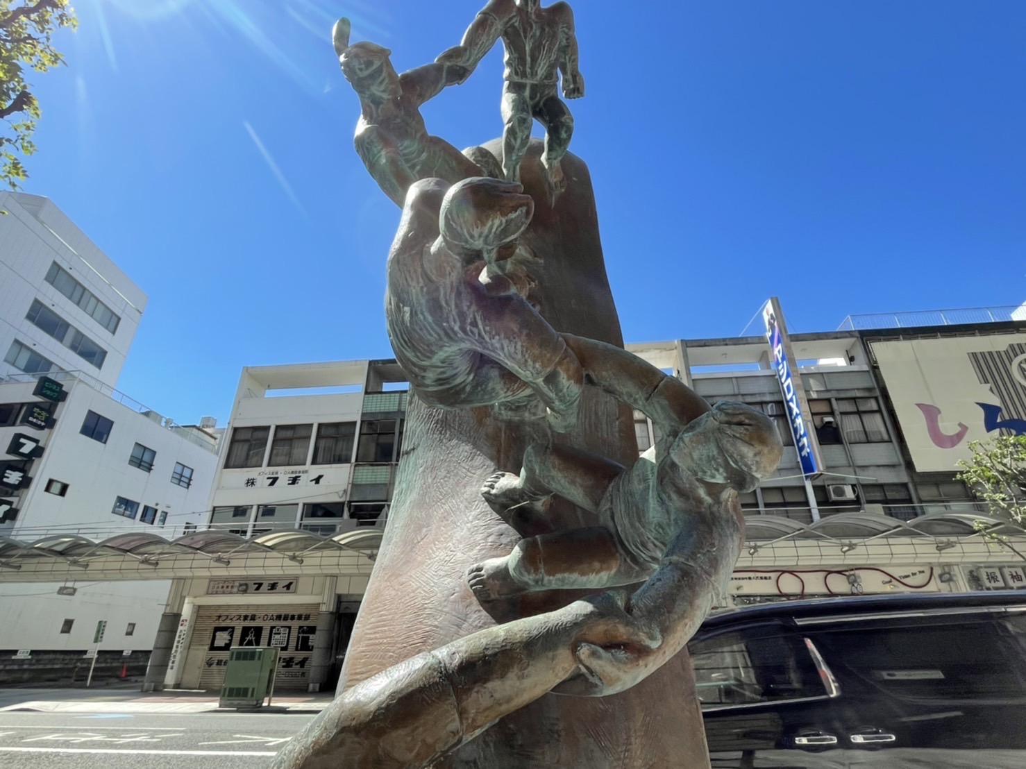 「仲間」という作品に出会った。きょう昼間に安田屋に天おろしを食べに行こうと思ってリバーサイドホテルらへんを歩いていたら・・・、「仲間の縦バージョン」を発見。