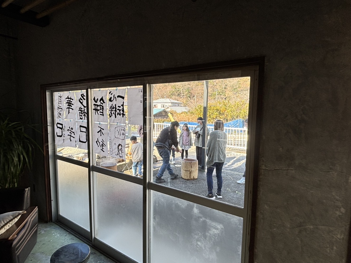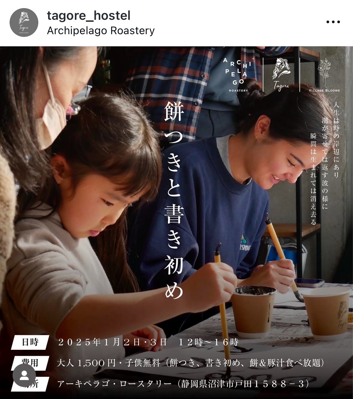 きょう1/3(土)。沼津市戸田にあるおしゃんなコーヒー焙煎所の「餅つきと書き初め」に行ってきた。アーキペラゴロースタリー。