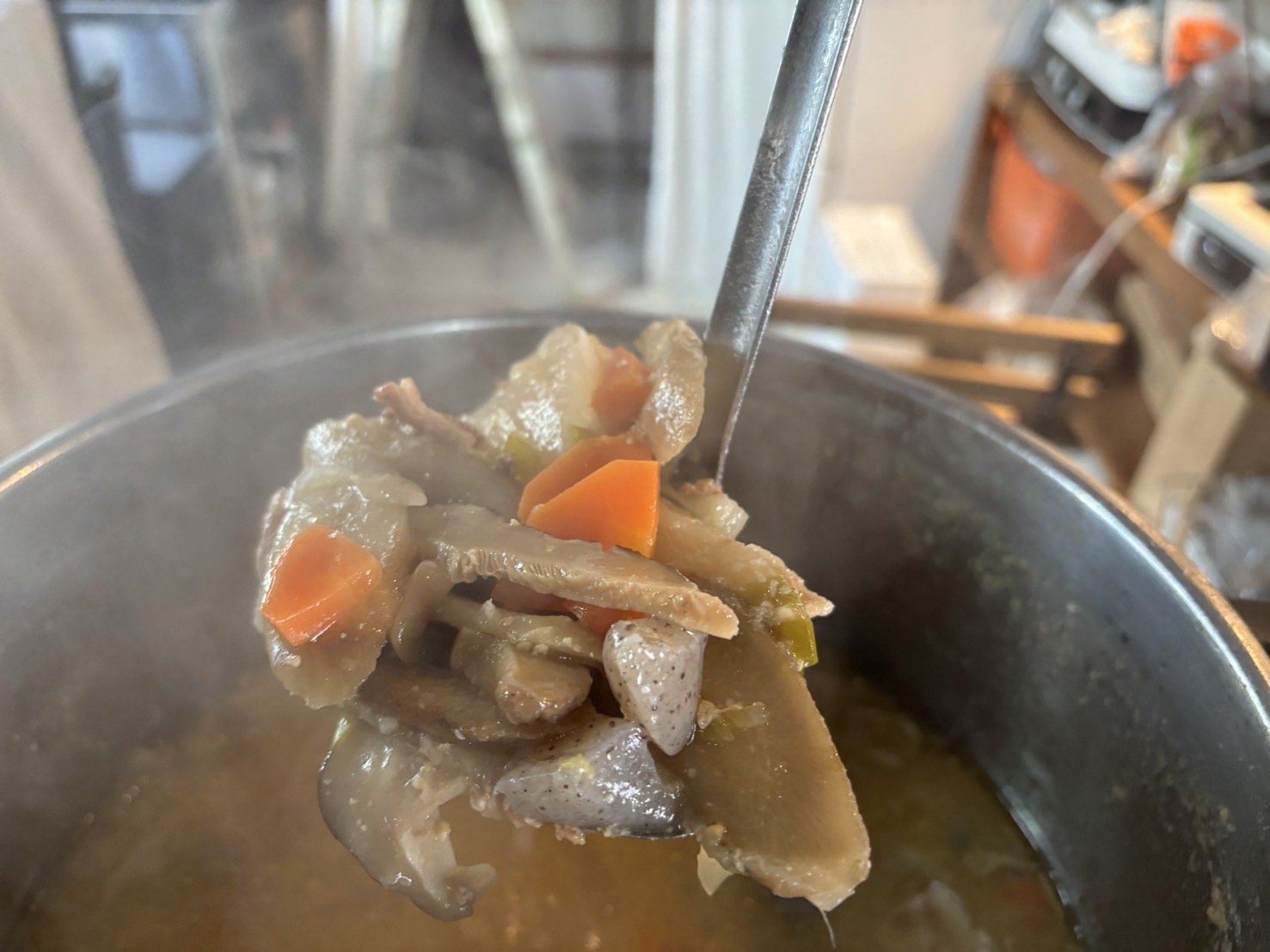 具だくさんの豚汁。これがもう・・・まじでうますぎだった。ちゃんと聞いてなかったけどw、味噌もなんか良いやつなんだそうで、3回おかわりして、お餅と一緒においしくいただきました。毎日食べたい、この豚汁。