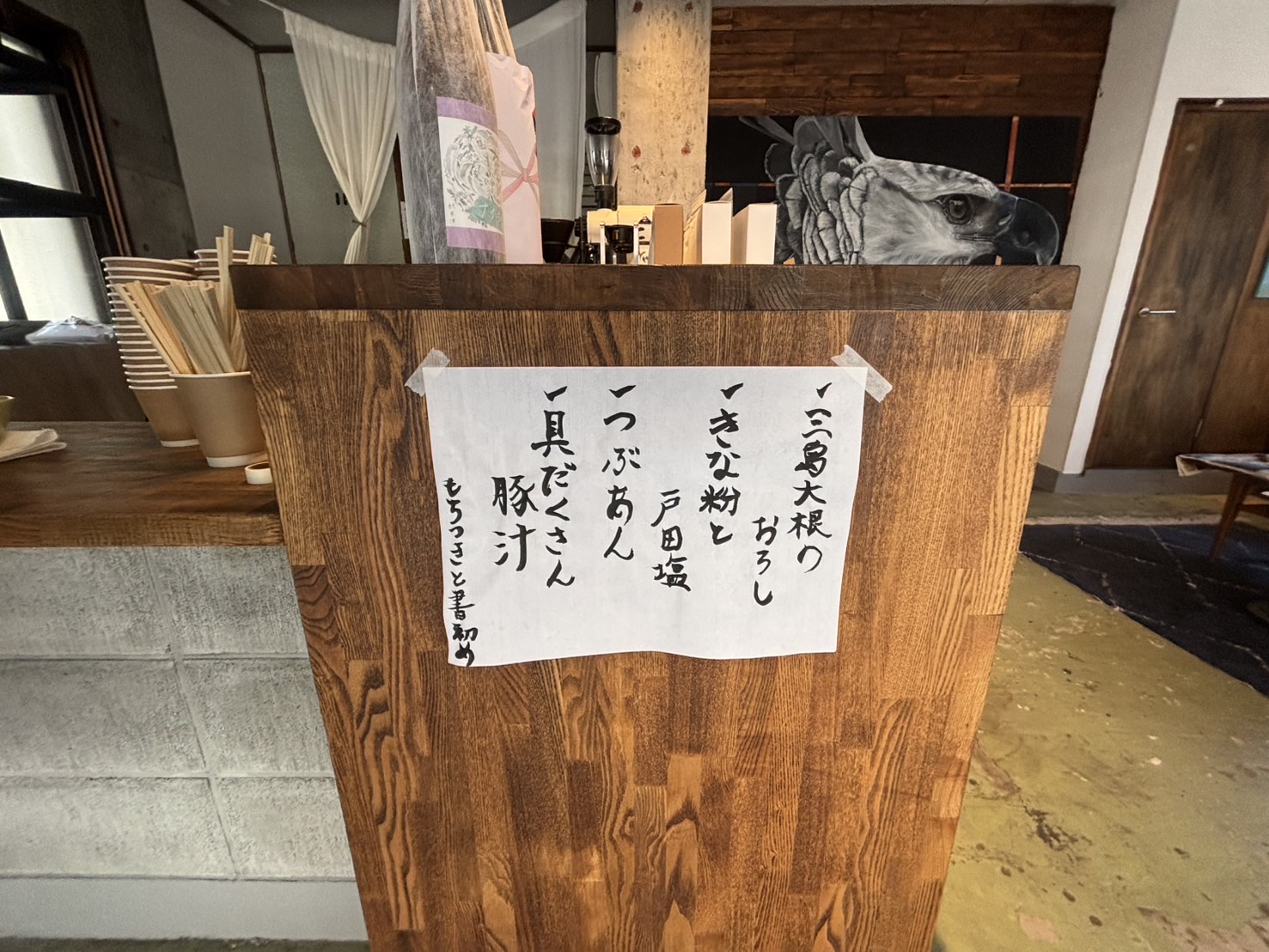 三島大根のおろし、きな粉と戸田塩、つぶあんで最高に美味しくいただきました。