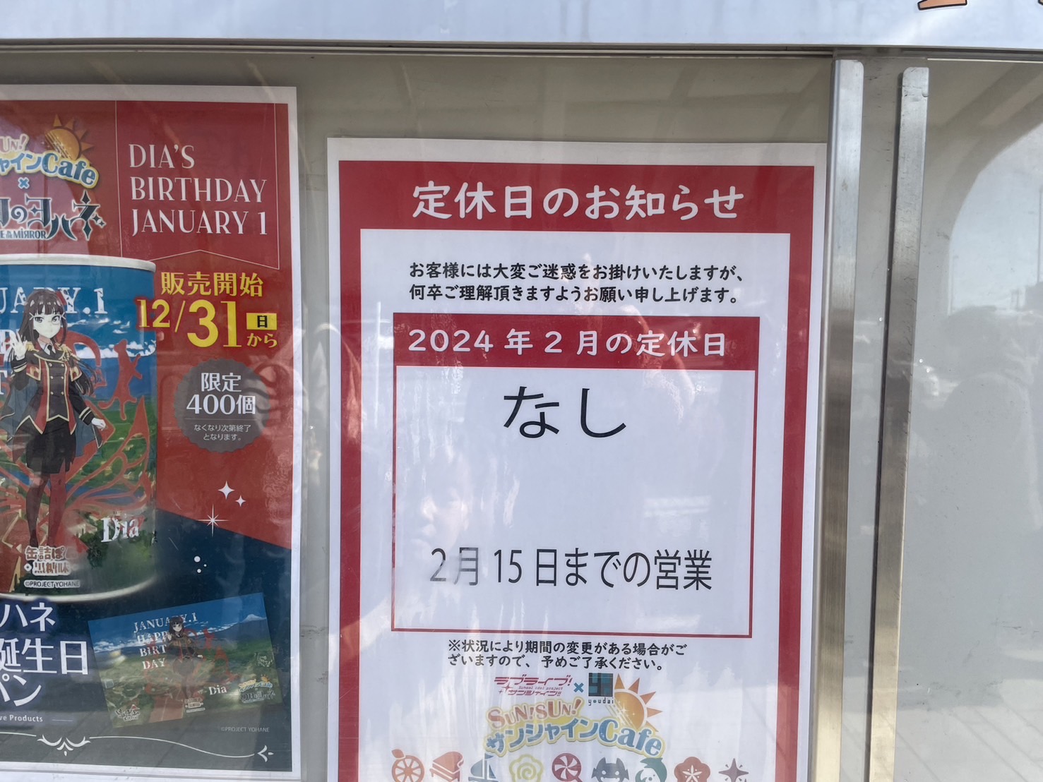 あさって2月15日の閉店までは定休日なしで営業みたい。