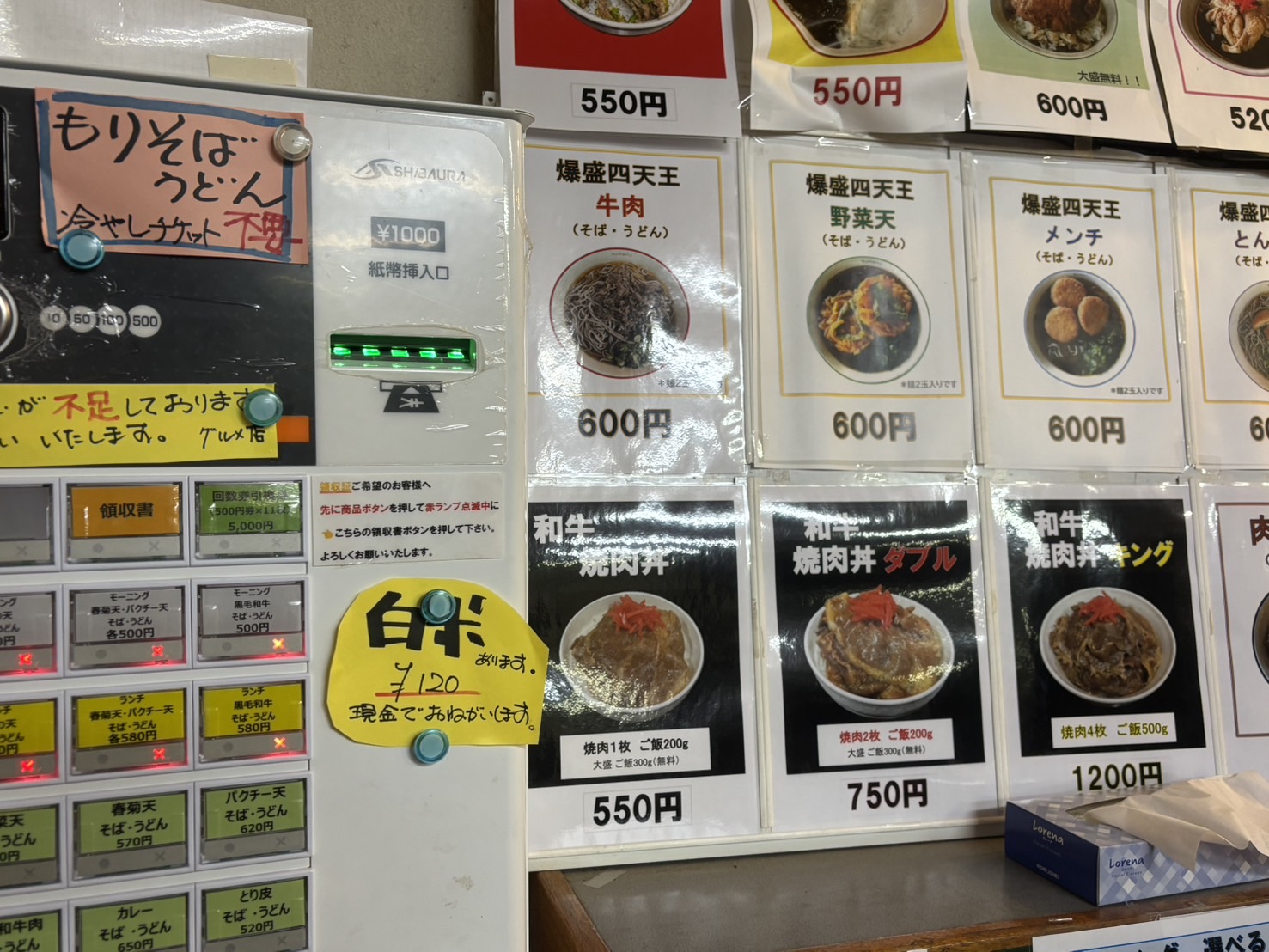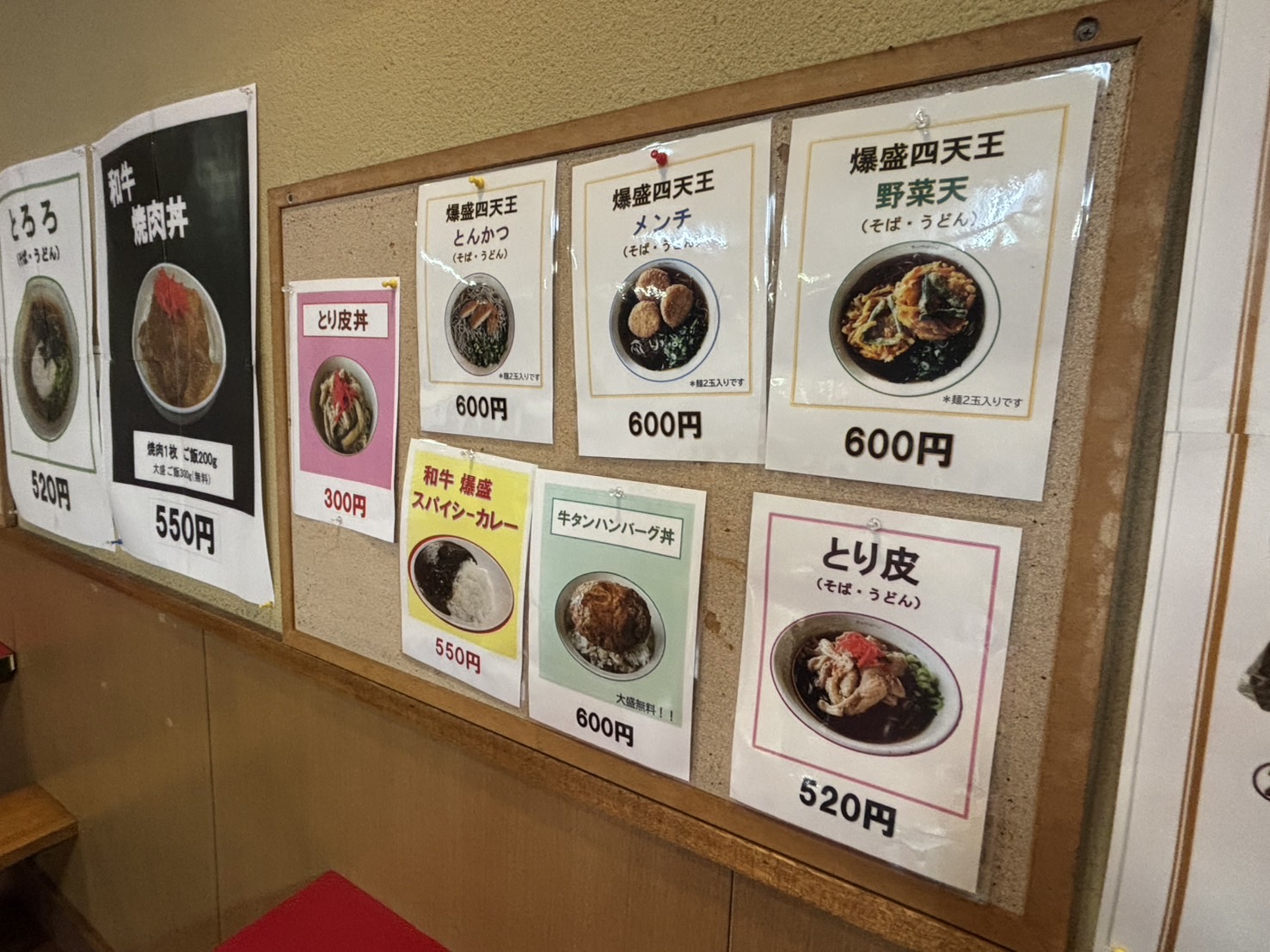むむっ。牛タンハンバーグ丼600円だって。これも和牛焼肉丼に負けないぐらい気になるな。だけど、やっぱりスマル亭来たらうどんかそばを食べたいし、僕は少食なので笑、次はだれかと一緒に来てシェアしようっと。