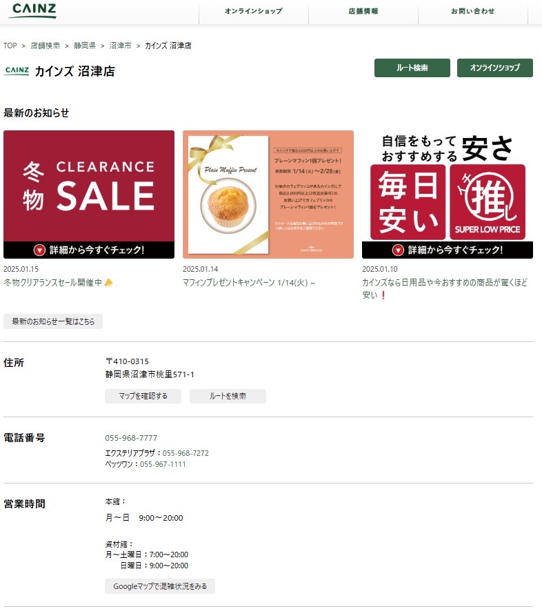 月~土曜日の資材館は、本館より2時間早くやってる。カインズ沼津店の営業時間がありがたい。(沼津市桃里)