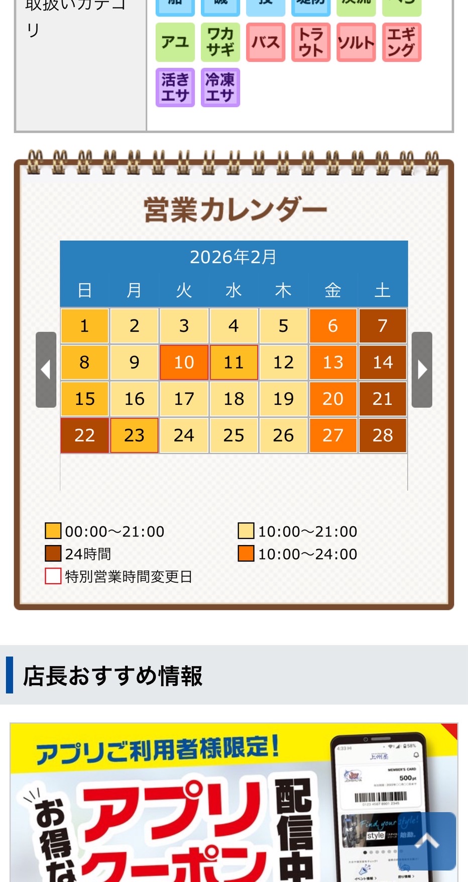 沼津のつり具上州屋は「週末は、24時間営業してる。」ってのを覚えておくといいかも。すごっ。国1沿いのフィットハウスだったところ。(沼津市西沢田)