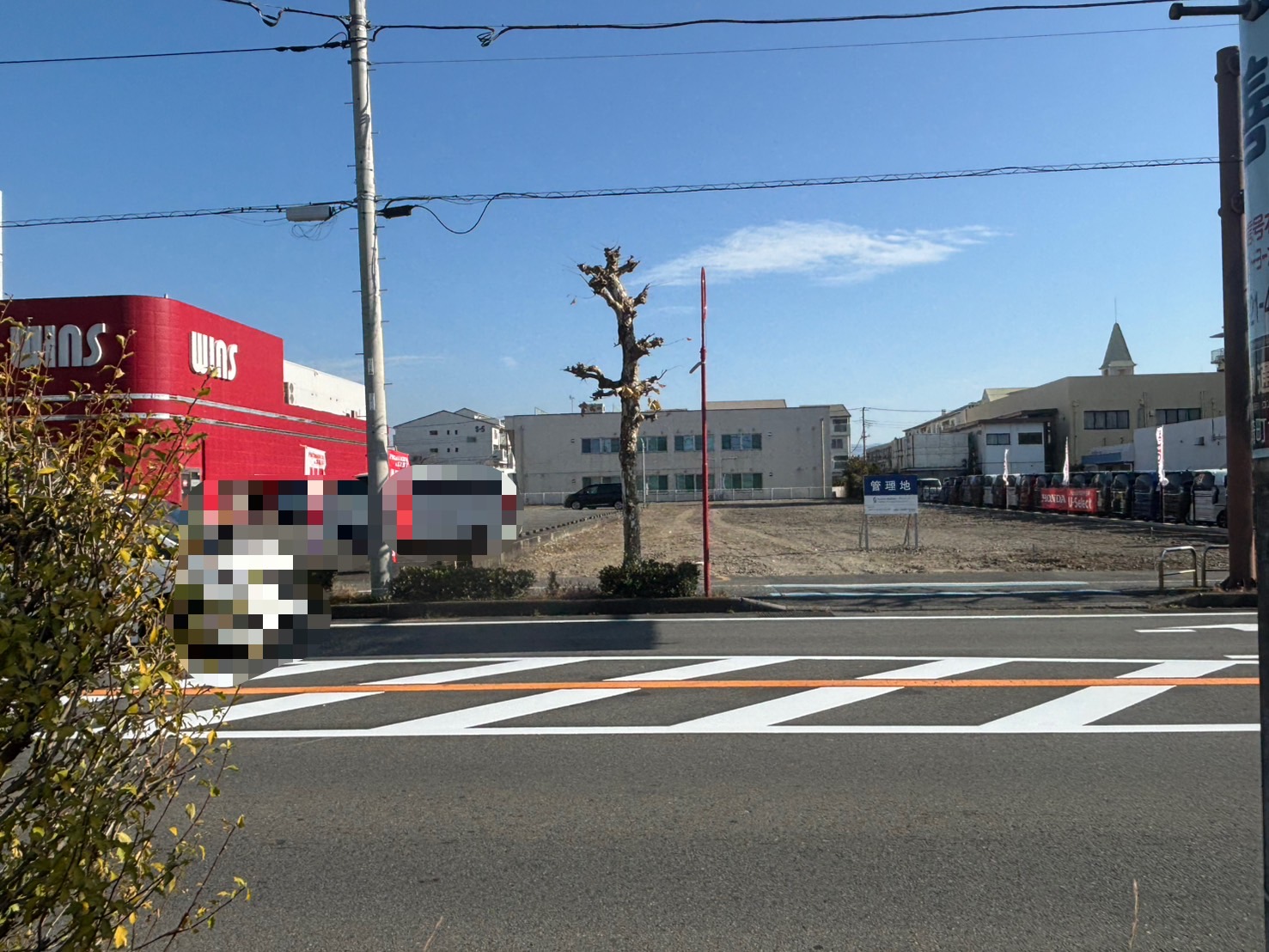 道路の向こう側は、いまは更地になってるけど、今後なにかできるのかなぁ。