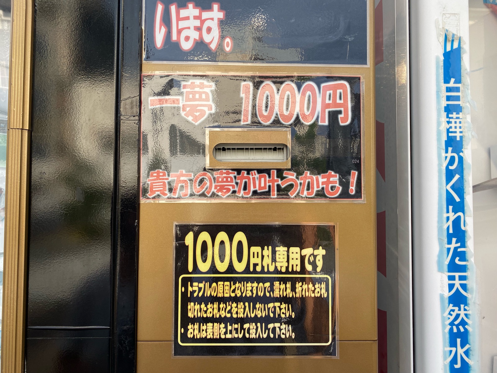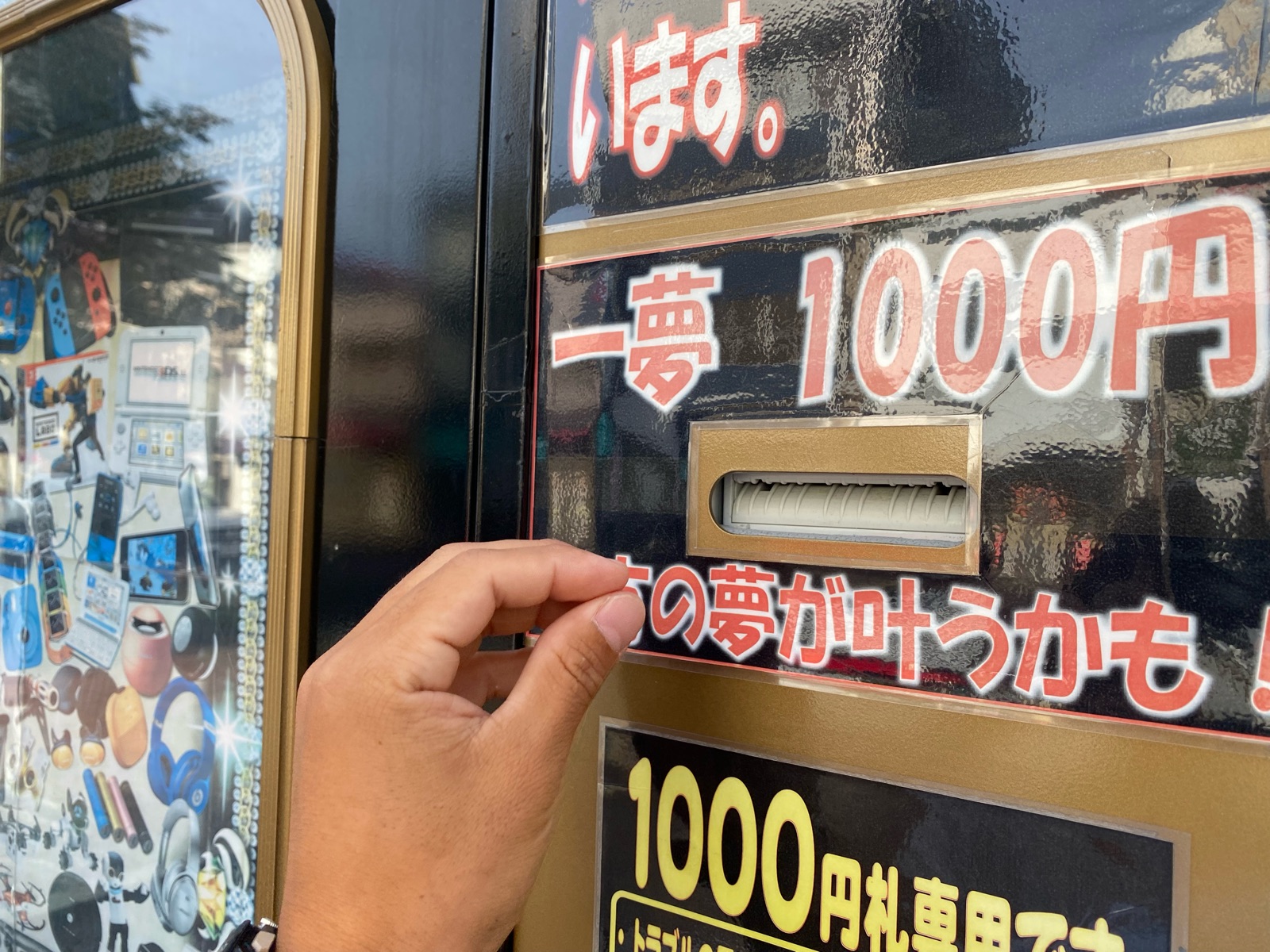 高まる気持ちで1000円札を入れるのに手こずりながら