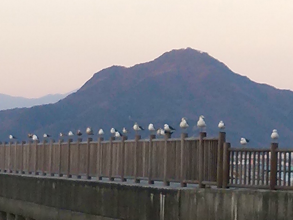 ほぼ同じ方角を見て、たたずむかもめたち。