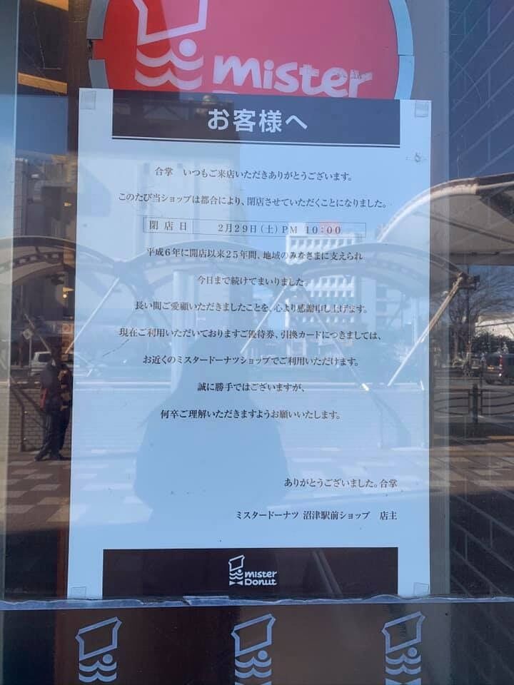 「閉店情報」沼津駅南口のミスド2/29に閉店