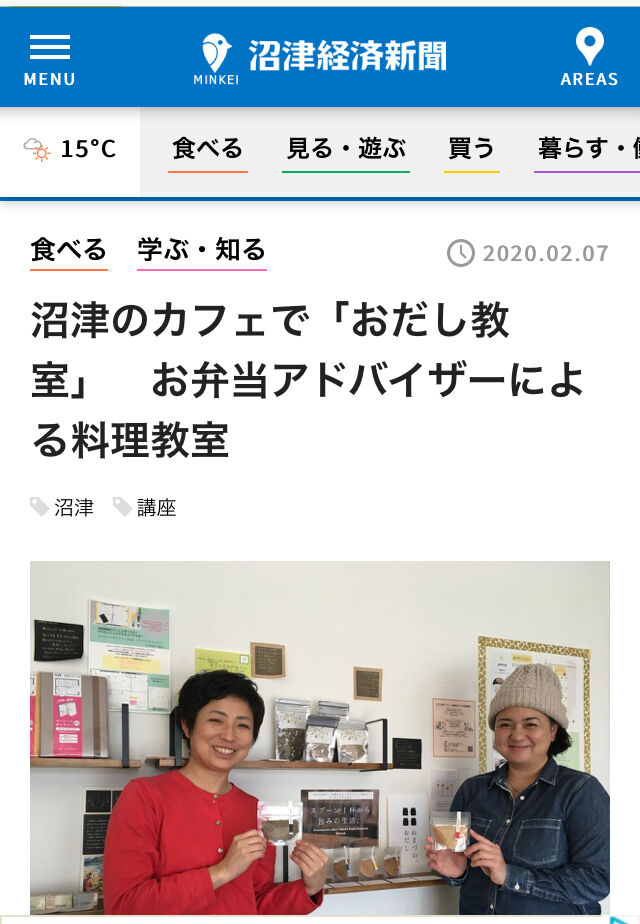 沼津のカフェで「おだし教室」お弁当アドバイザーによる料理教室 / 沼津経済新聞(2020.2.7)