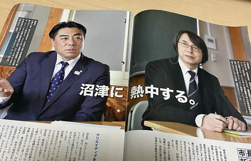 市長新春対談として、頼重秀一沼津市長と、ピタゴラスイッチの監修で有名な佐藤雅彦東京芸大大学院教授が語り合っています。