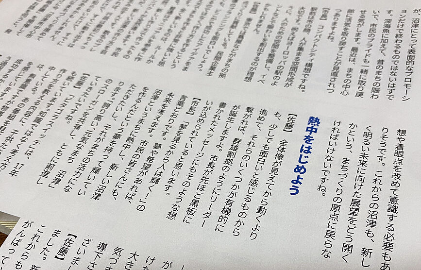 産業のこと、まちづくりのこと、クリエイターの視点から沼津のことを話してくれているのと、市長も楽しそうに沼津のことを語っている光景がありありと見えてくるようです。