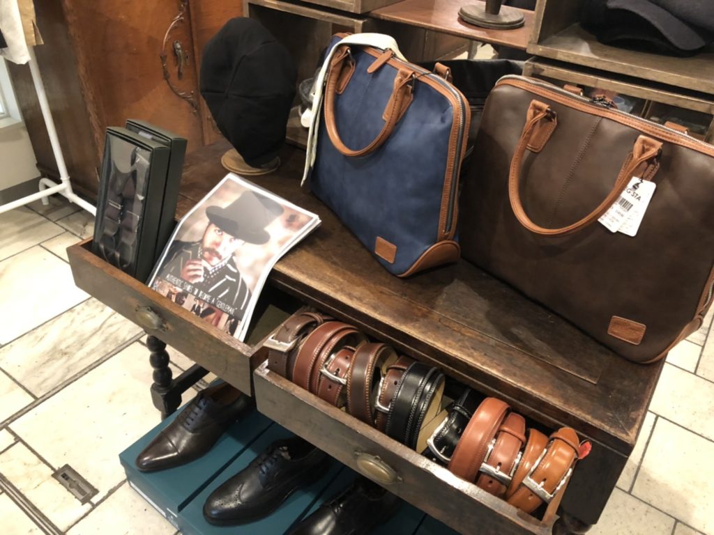 スーツや革靴から、