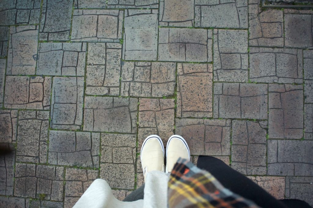 県道162号を挟んで広がる「上本通り商店街」のタイルは何に見えますか?