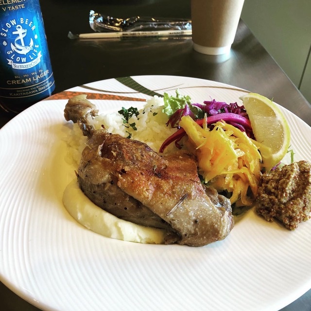 贅沢な鴨のもも肉に付け合わせの野菜もマッシュポテトも最高。