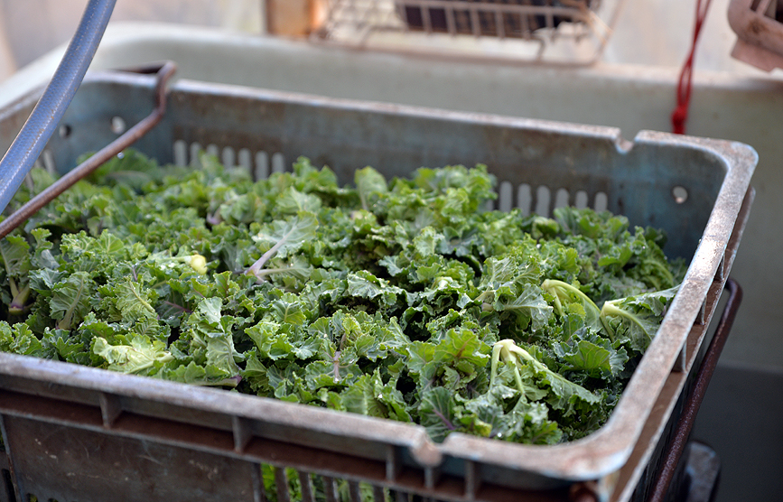 ケールと芽キャベツのハイブリッド野菜、プチヴェールとか。