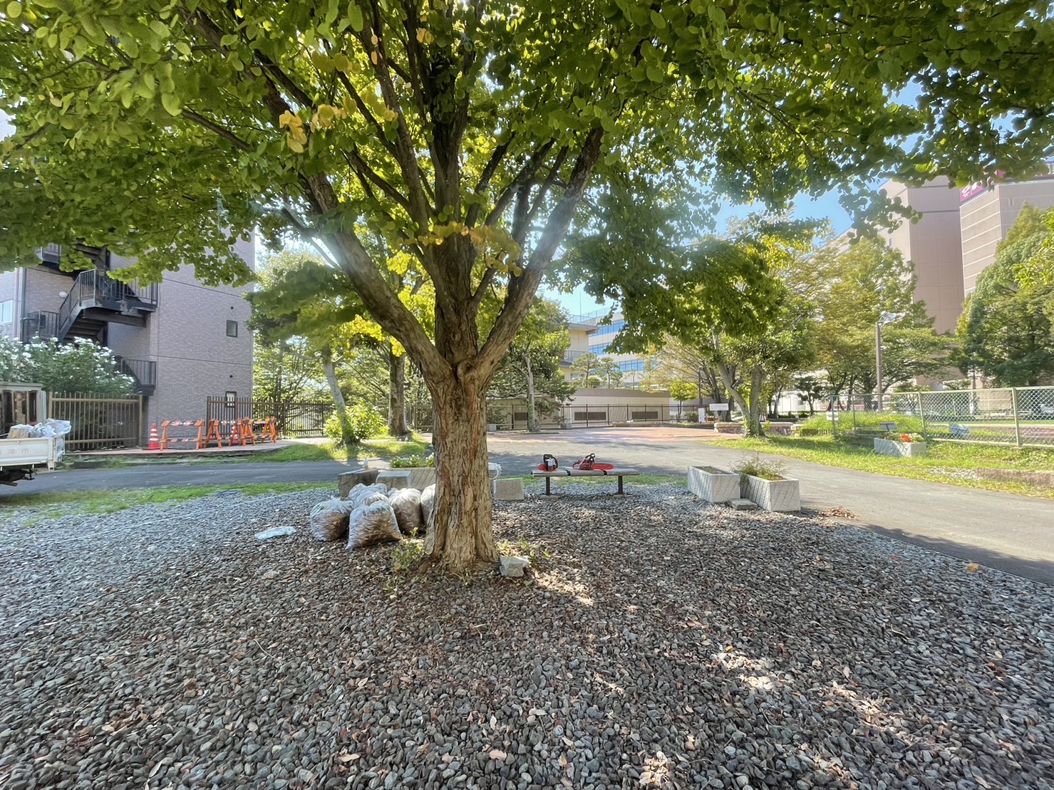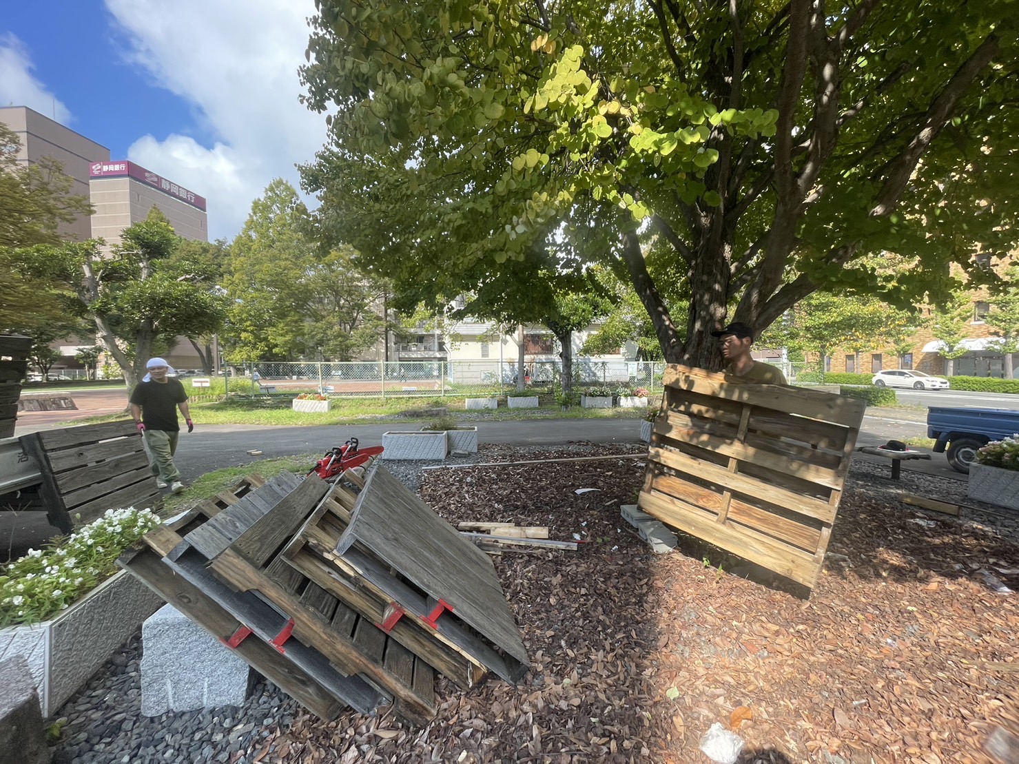 姉妹都市アメリカ・カラマズー市から贈られたという木の周りにあったステージみたいなところが、