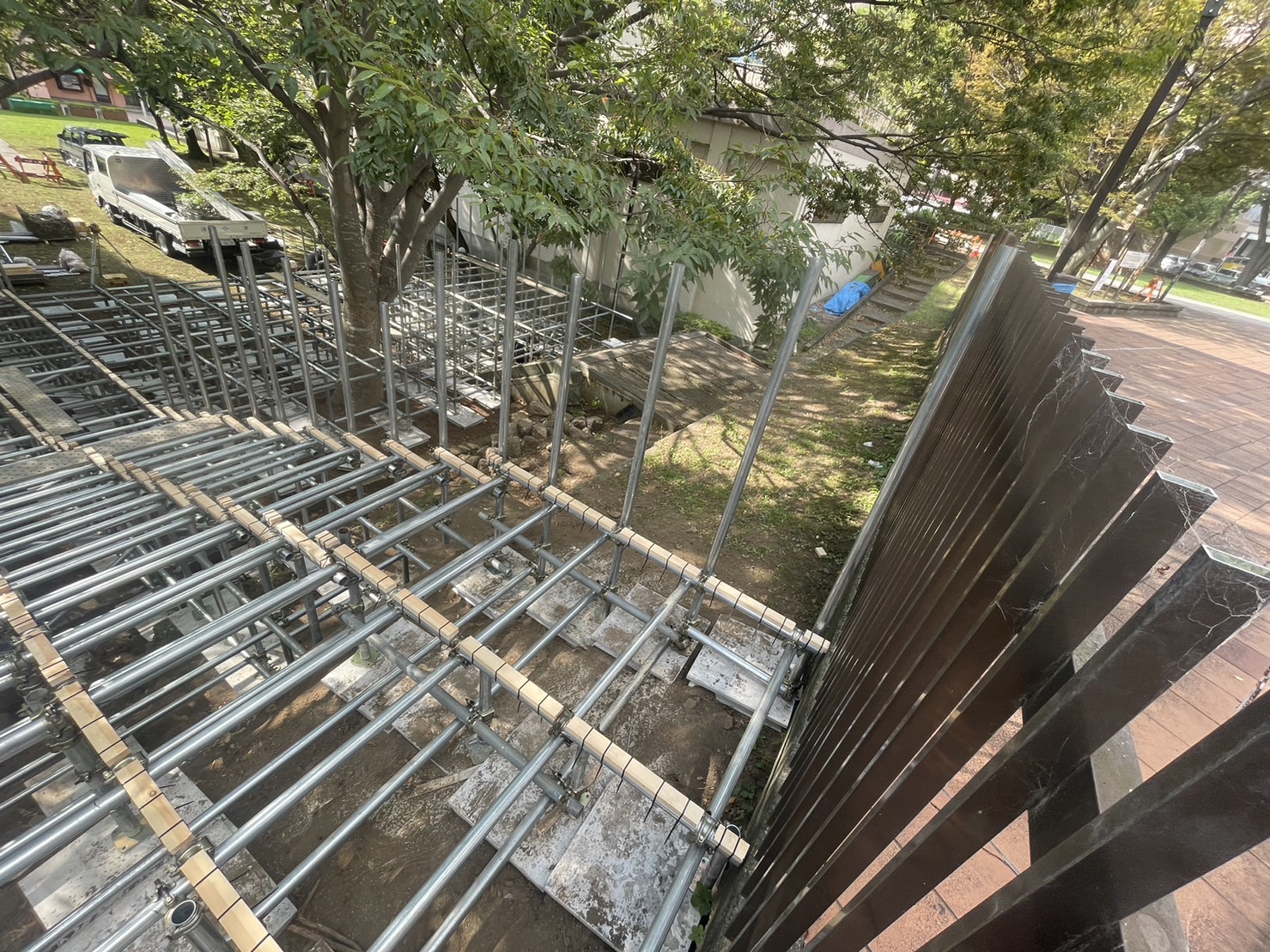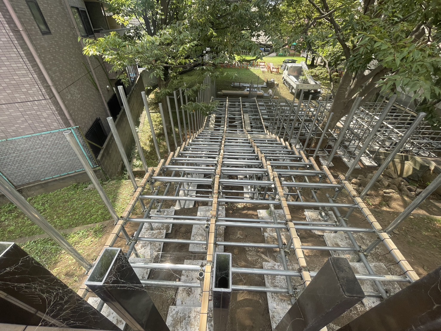階段っぽい足場が組み立てられてる。