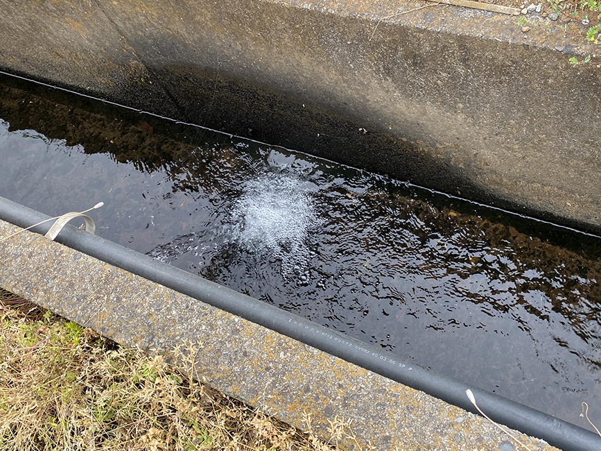 そんなビニールハウスの脇で発見しました。そこそこの水量が流れ出ている湧水スポット。