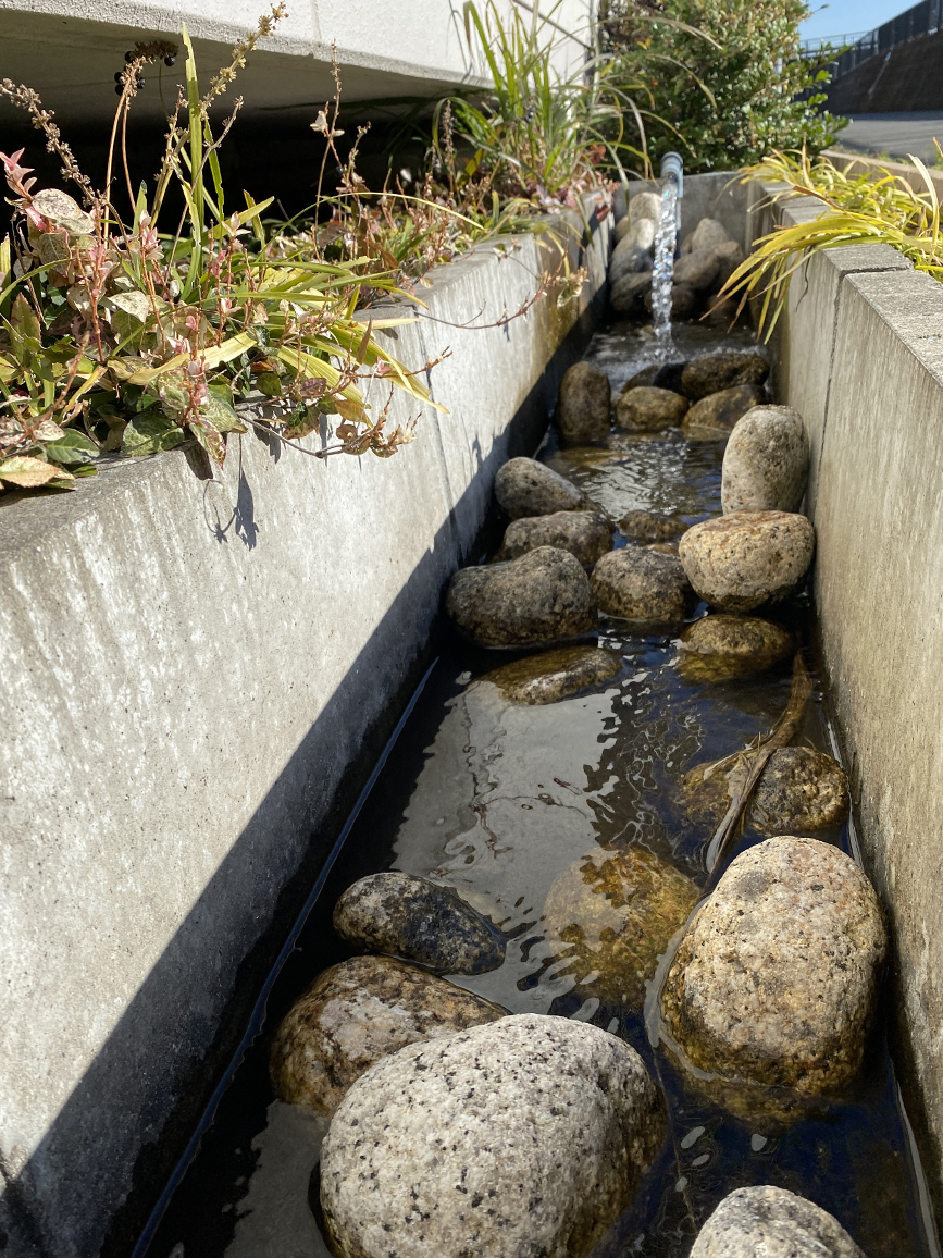 公文の教室(大手町教室)が入ってるマンションのすぐ脇にチョロチョロと水の流れる音がします。