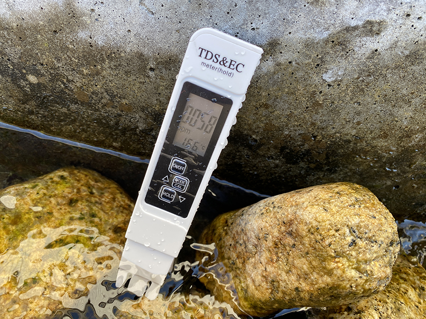 水温を測定してみれば、16.6℃をマーク。水質を表す数値は59となかなか。