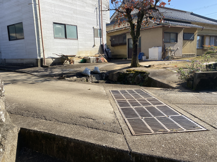 道を挟んで水路に流れ込んでいくようで、落ち葉などが流れていかないようにゴミ受けみたいなのが設置してありました。