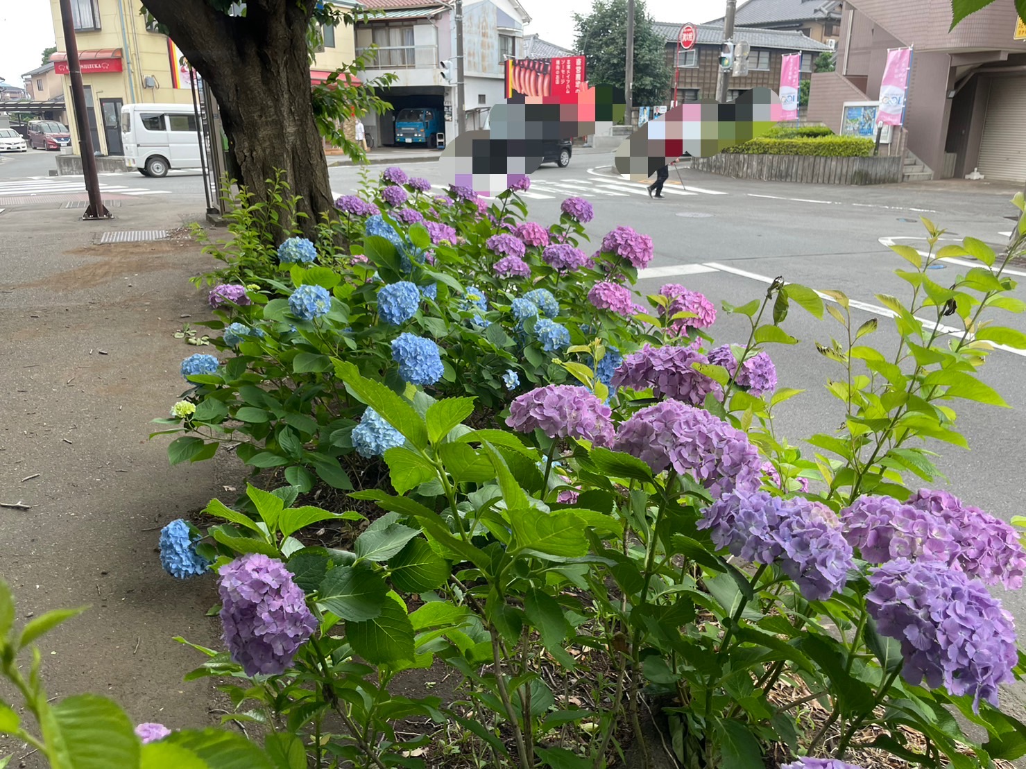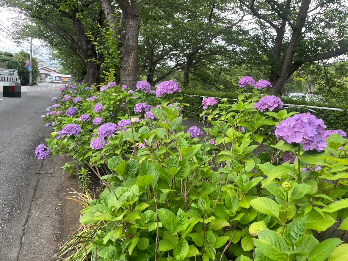 駐車場の出入り口らへんより、このへんのほうがあじさいが多くて