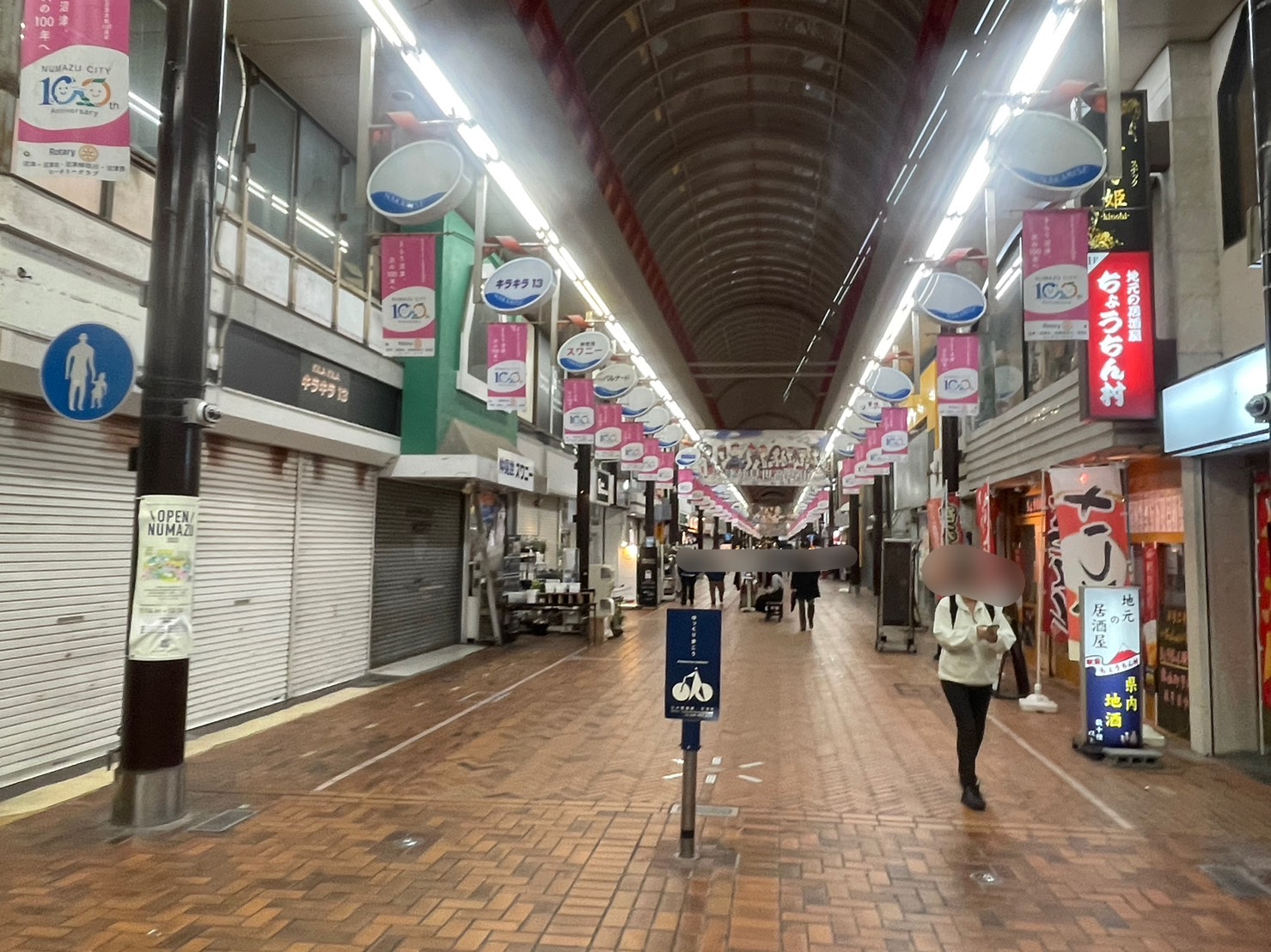 ついさっき。きょう11月11日(土)の沼津仲見世商店街の18:30ごろ。