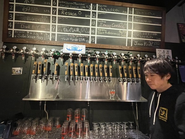 ブリュワーのフセさん。かっこいいタップハンドルが20個ずらりと並ぶリパブリュー。