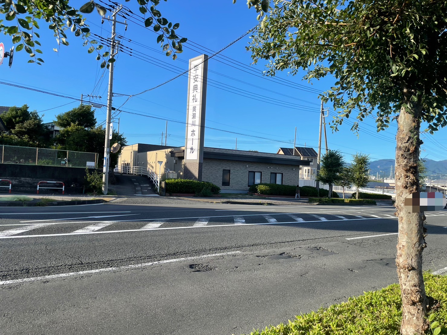 うしろを振り向くと道路の向こう側には平安典礼黄瀬川ホール。