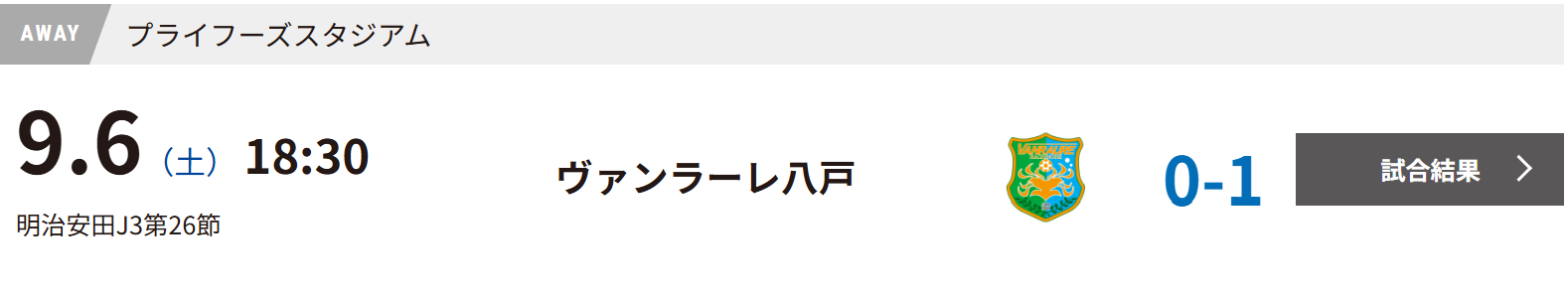 直近の9/6(土)のアウェイ・ヴァンラーレ八戸戦は、