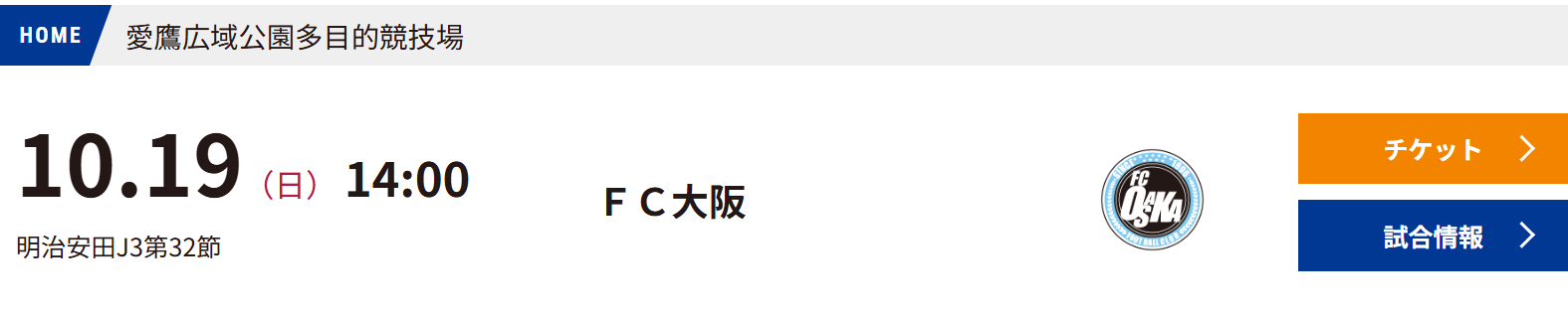 10/12(日)のアウェイ・ツエーゲン金沢戦は、