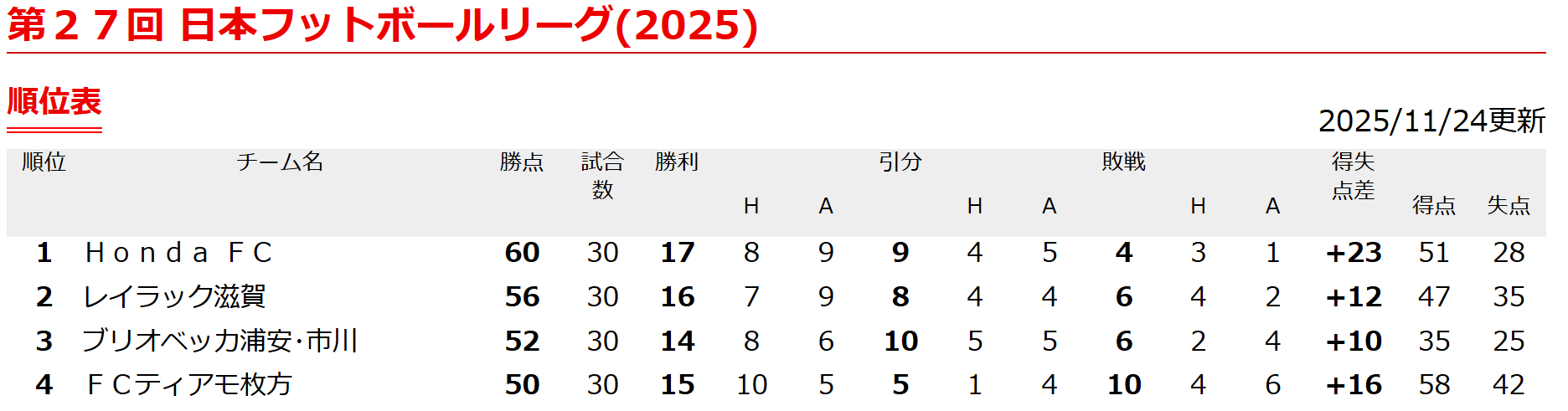 日本フットボールリーグオフィシャルWEBサイト より引用