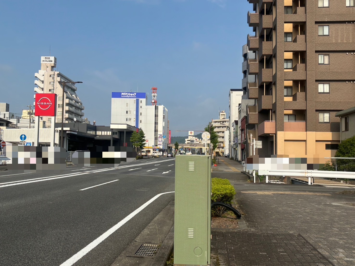 きょう6/19(木)夕方ごろの沼津市白銀町付近。こっちにずぅーっと行くと、原方面。ちょっと先の右側にはDCM沼津店がある。