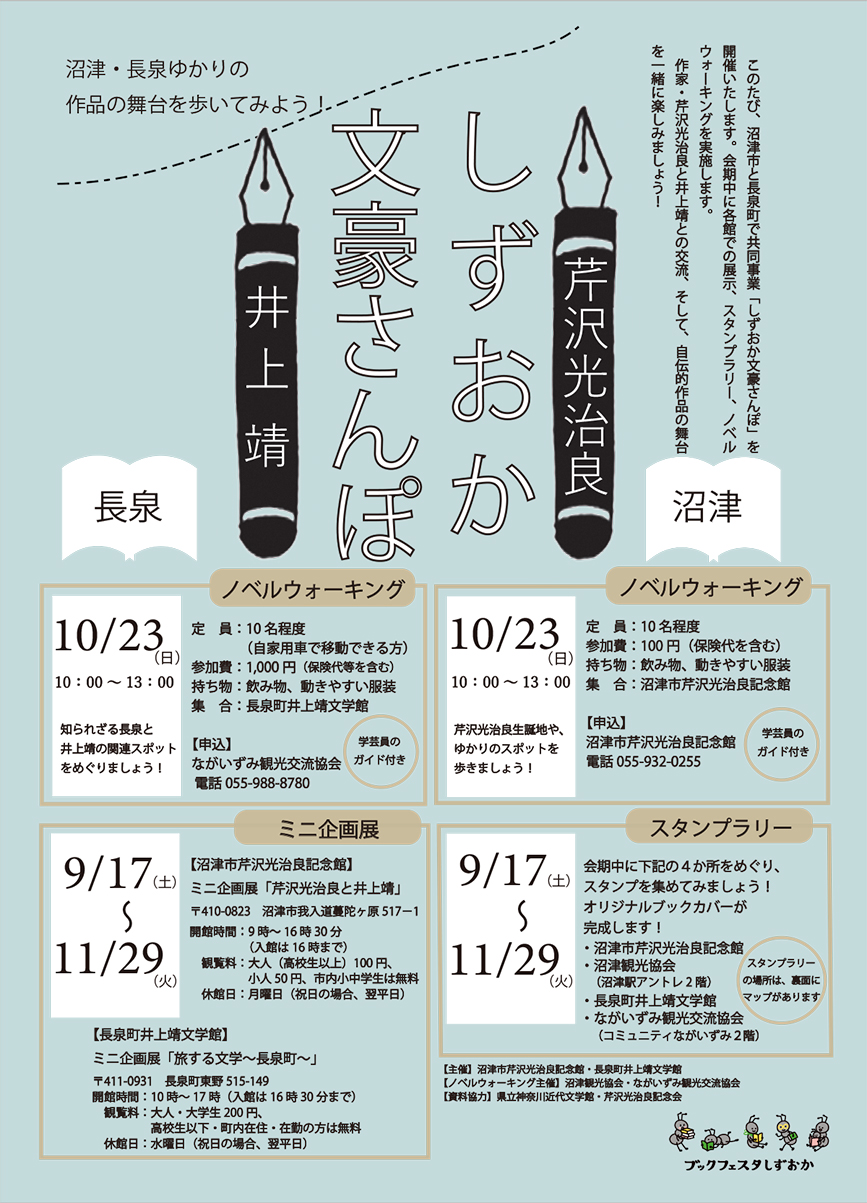 沼津市芹沢光治良記念館&長泉町井上靖文学館協同事業のタイトルは「しずおか文豪さんぽ」!!