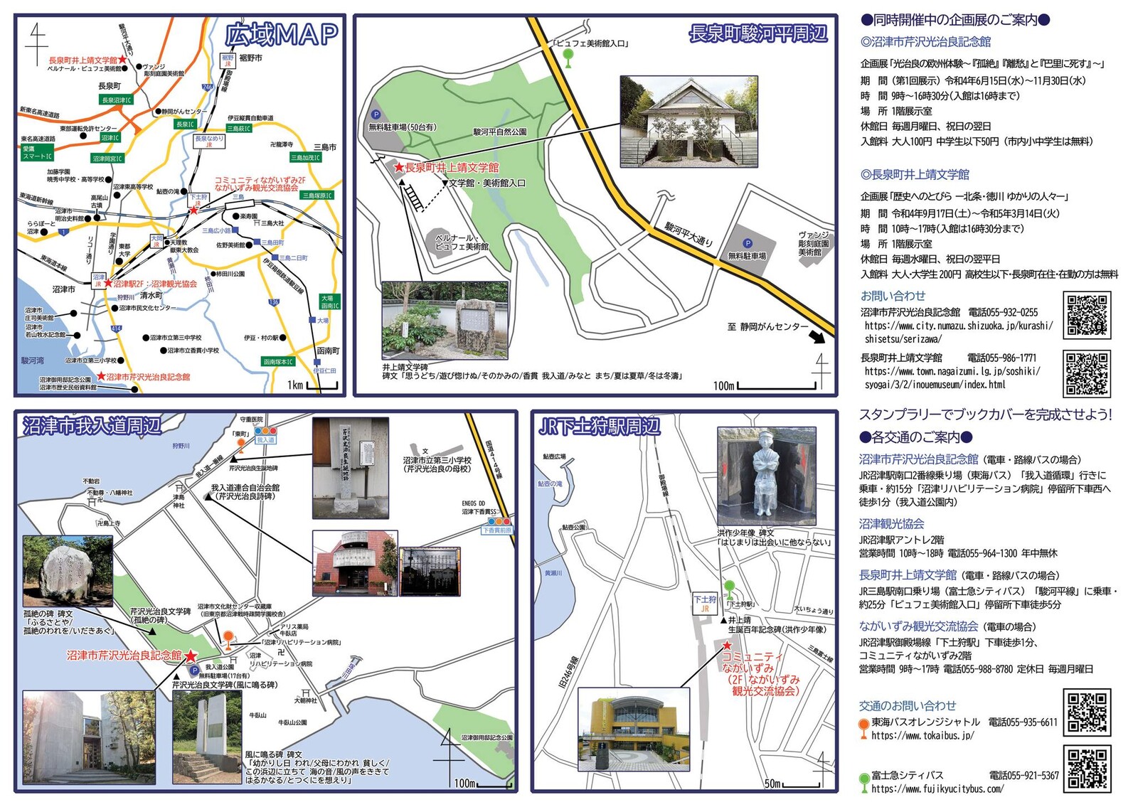 スタンプを押せる場所は、沼津市芹沢光治良記念館と井上靖文学館に加えて沼津駅ビルアントレにある沼津観光協会と、御殿場線下土狩駅から徒歩1分の場所にある長泉観光交流協会の4ヶ所です。