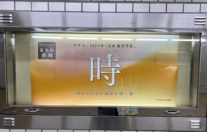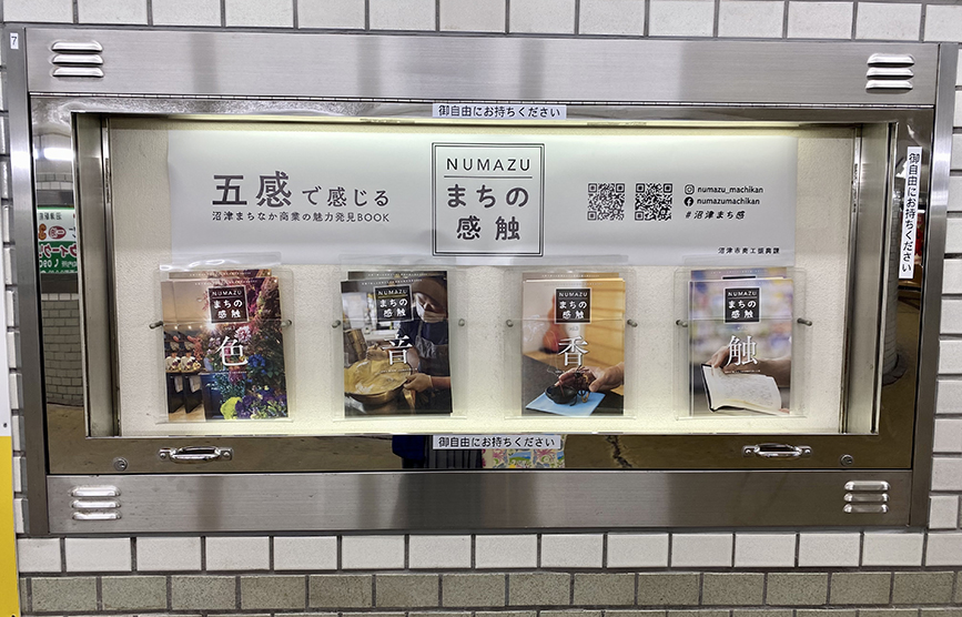 沼津市が発行する、「五感で感じる沼津まちなか商業の魅力発見BOOK『NUMAZUまちの感触』」が地下道ショーケースをプチジャック中!!