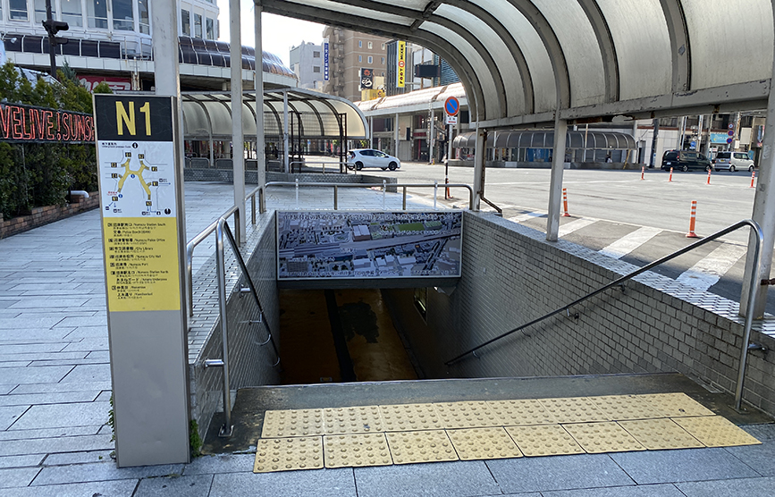駅前の交差点をノンストレスで東西南北好きなところにアクセスできる、入口出口は8ヶ所。