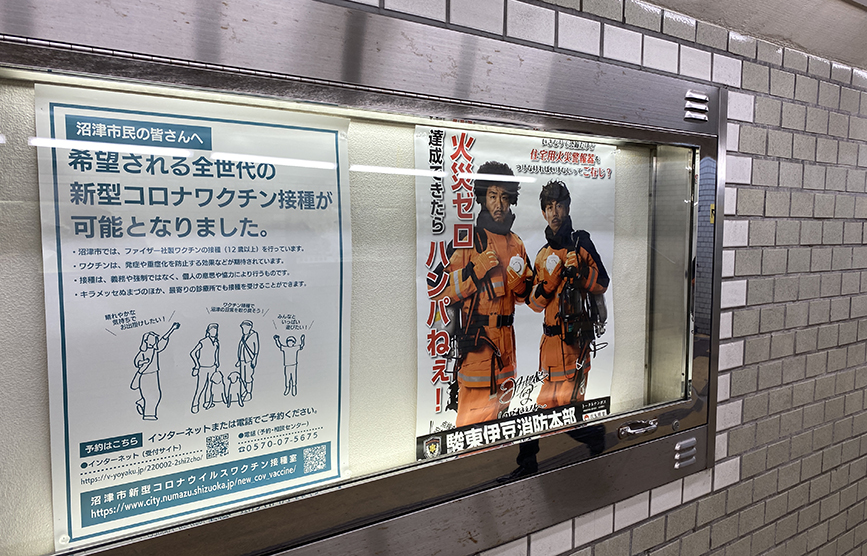 あれ?沼津駅南の地下道が…なんかおしゃれに。沼津まちなか商業の魅力発見BOOK『NUMAZUまちの感触』が地下道ショーケースをプチジャック中!!