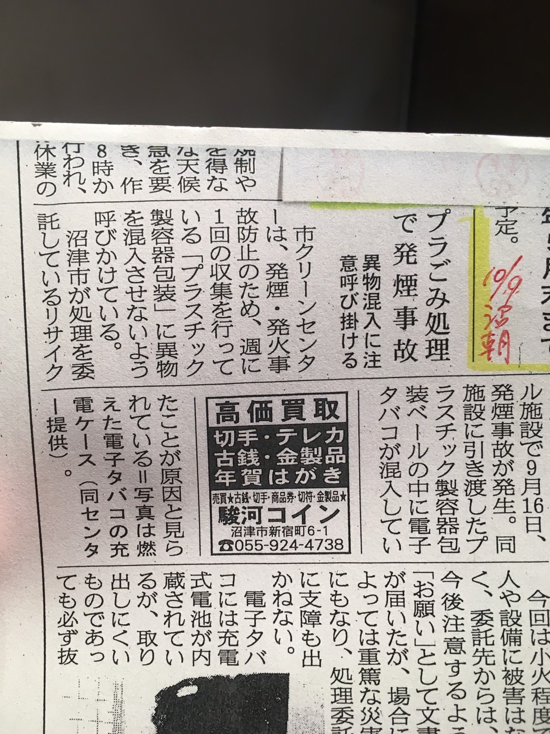 発煙事故が起きないように電池類を混ぜて出さないというのももちろんだけど、