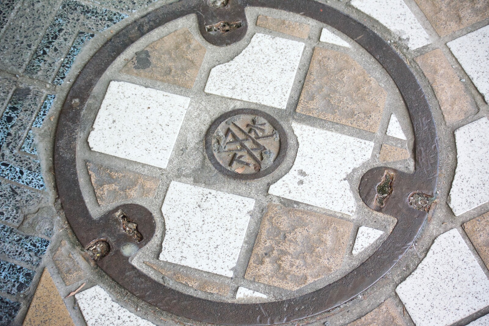 マンホールの蓋にも同じタイルが敷いてある。そして周囲はマンホールに合わせてくり抜いている!