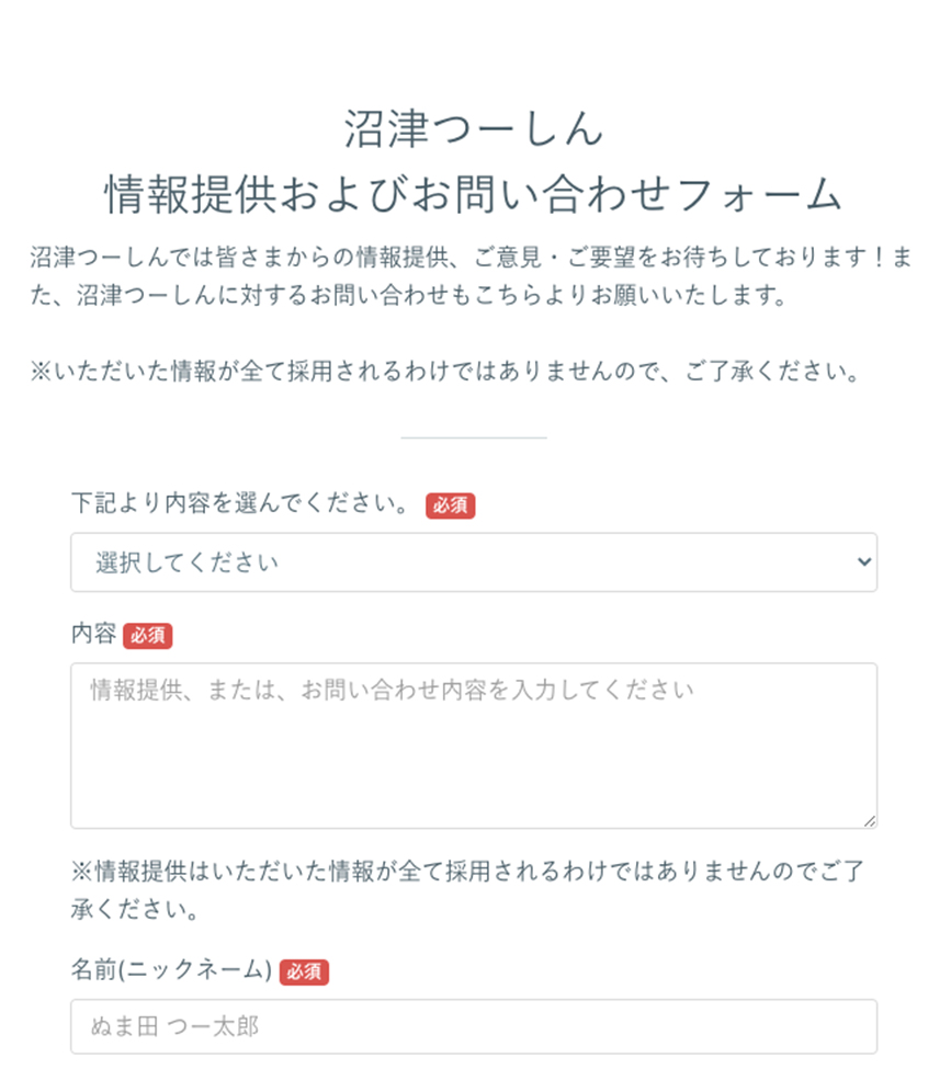 沼津の面白いところを教えてください!!ぬまつーに情報提供フォームがやってきた!