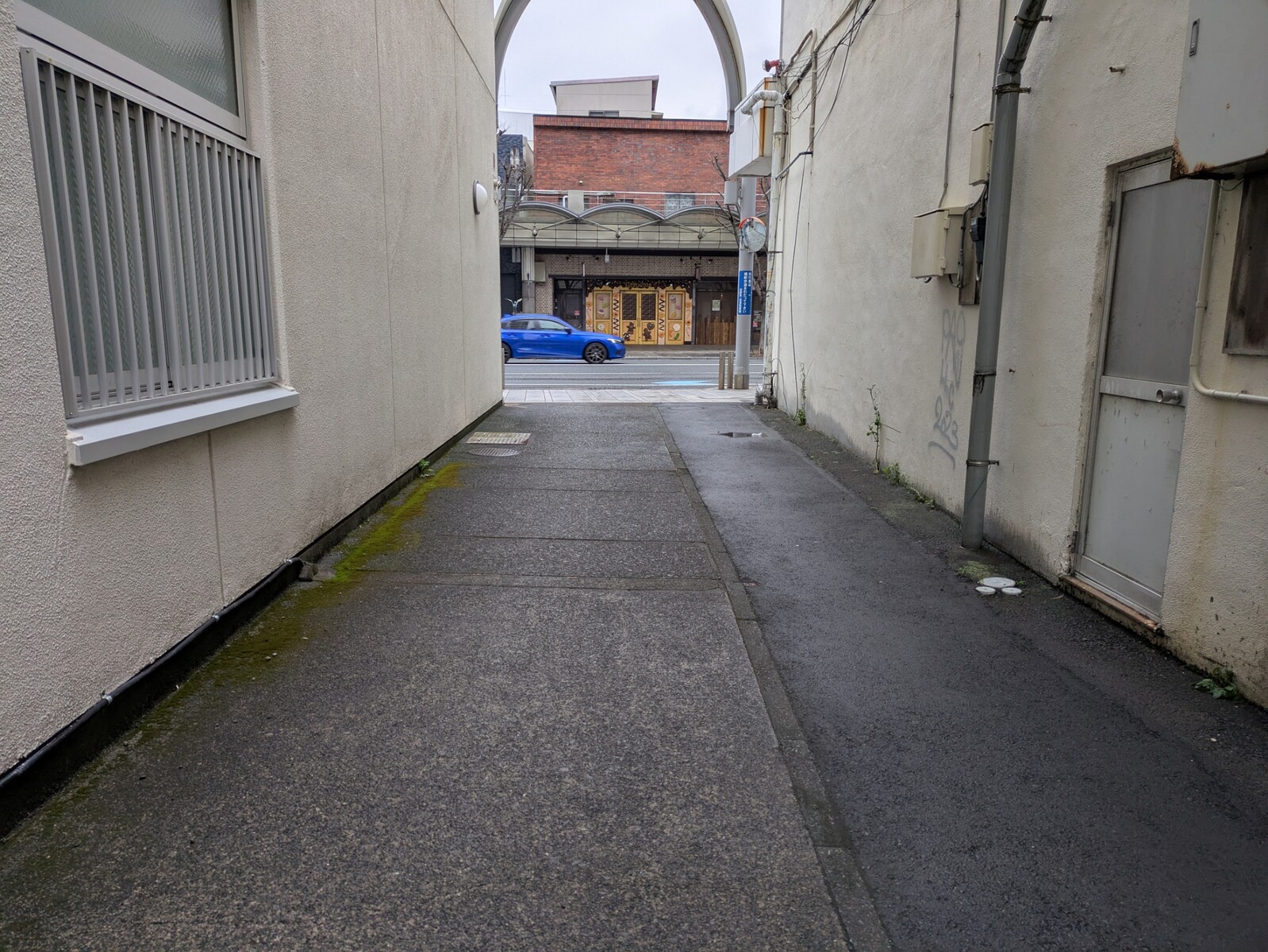 隣の建物の「蓮.TETSU」のさらに隣の細い道。