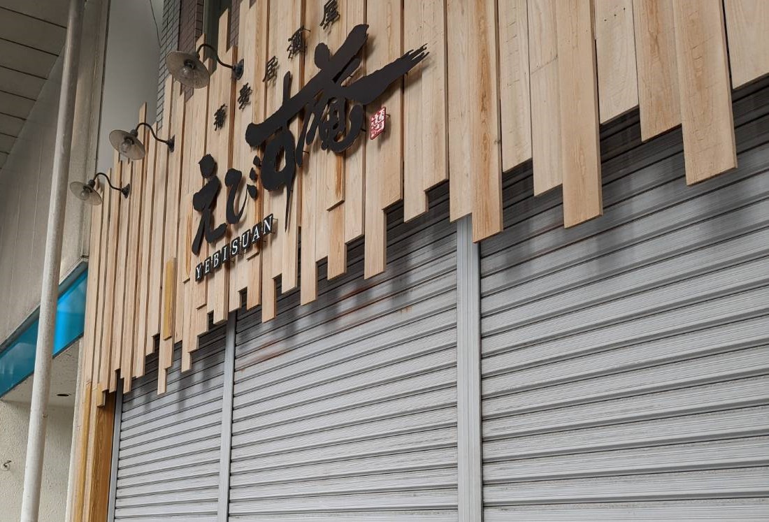 沼津駅南口のえびす庵。入り口横には、妄想膨らむ○○がある。(沼津市大手町)