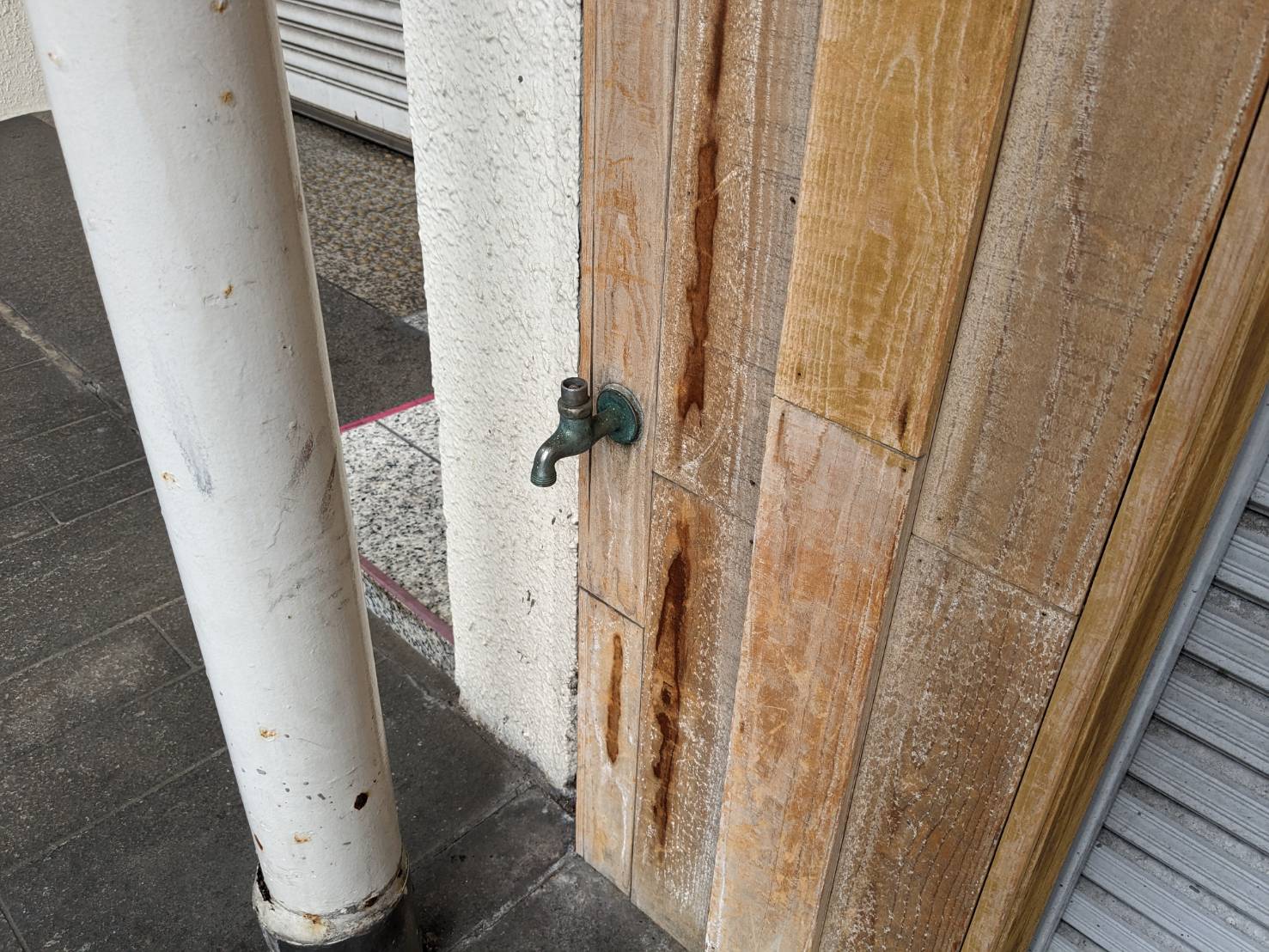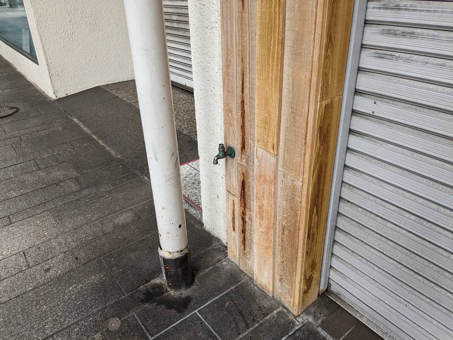 水栓金具がひょっこり。ハンドルはない。
