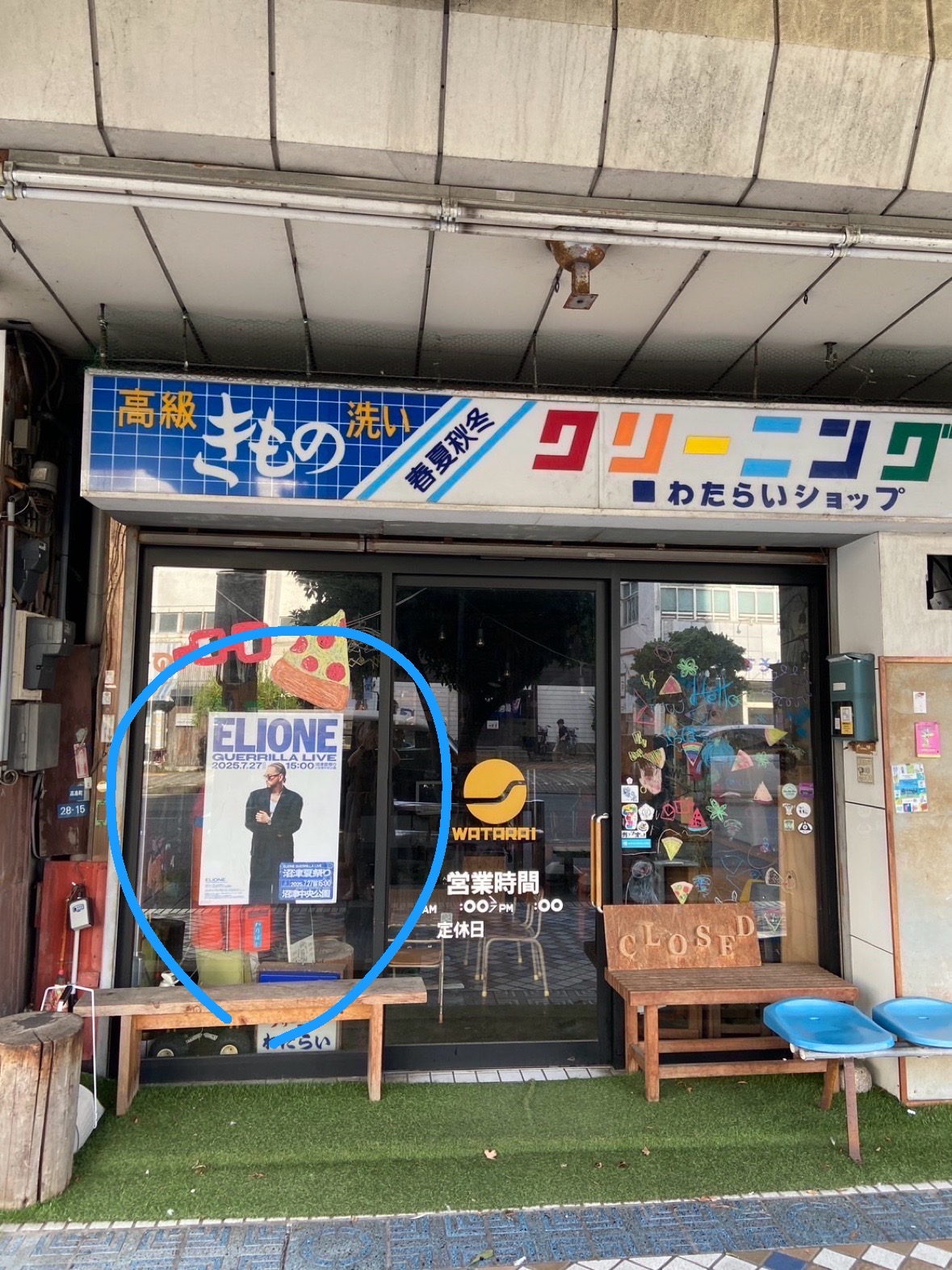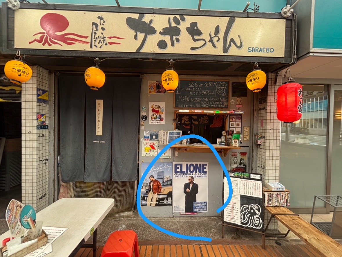 ゲリラライブはどこでやるのか・・・。彼のゆかりのある飲食店や、応援しているショップに貼られているポスターに、ライブの場所が書いてあるので・・・、