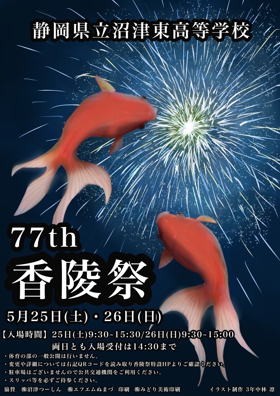 これは沼津市内のあちこちに貼っていただいている香陵祭のポスター。今年のテーマは、、、金魚。