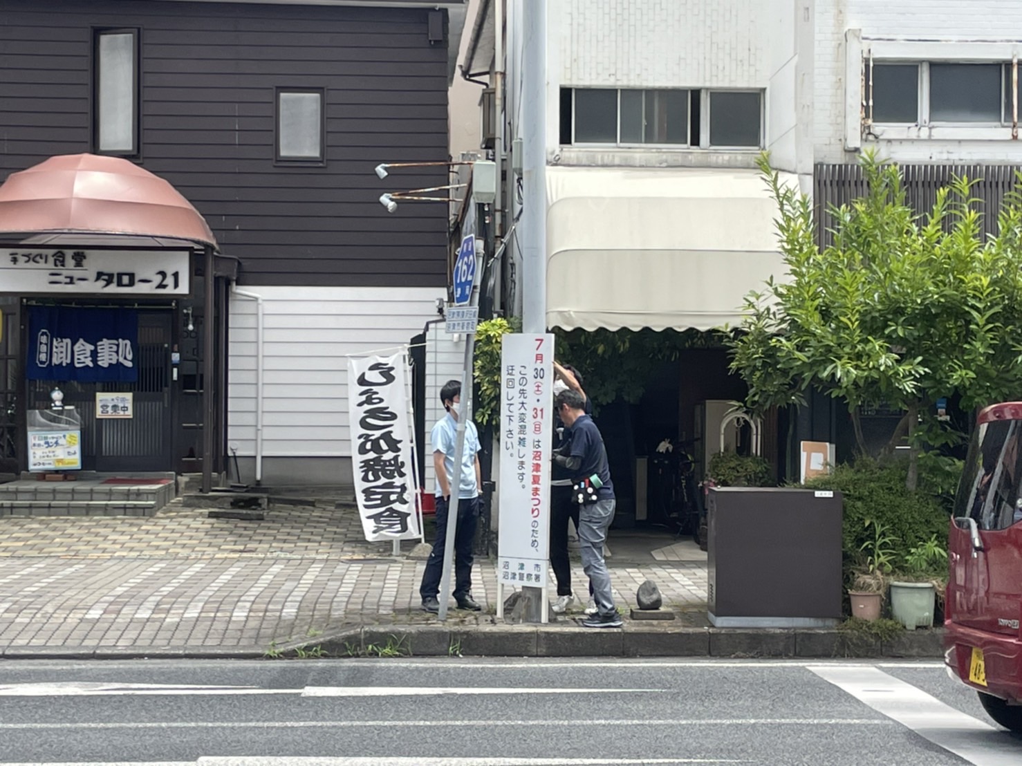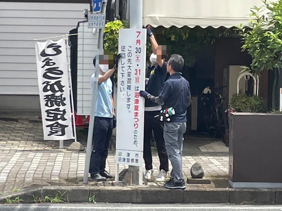 沼津夏まつりの準備。ちゃくちゃくと進んでる。リコー通りにも看板設置してた。