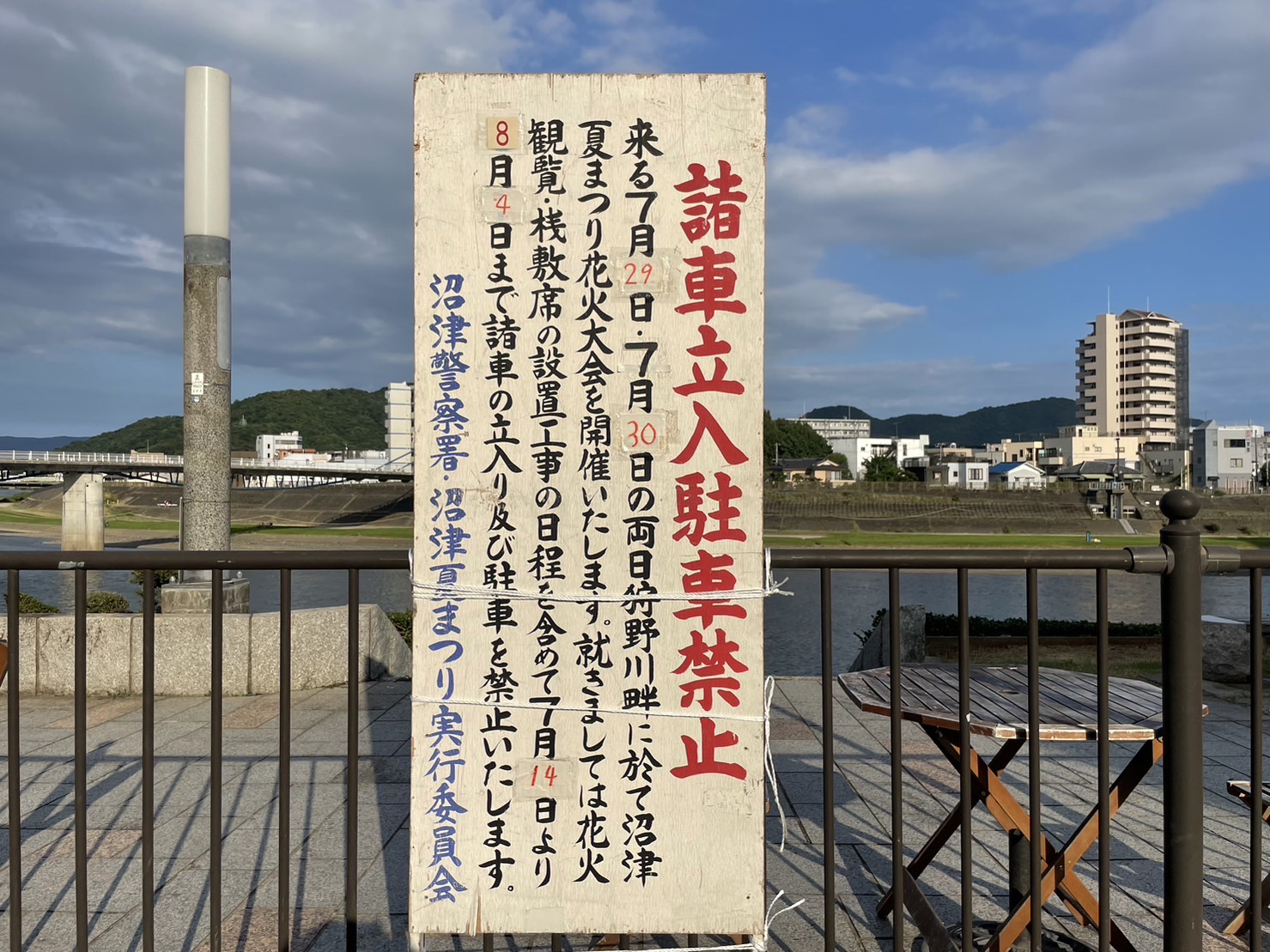 ナイアガラの準備はじまってる。きょう7/20(木)の狩野川。第76回沼津夏まつり