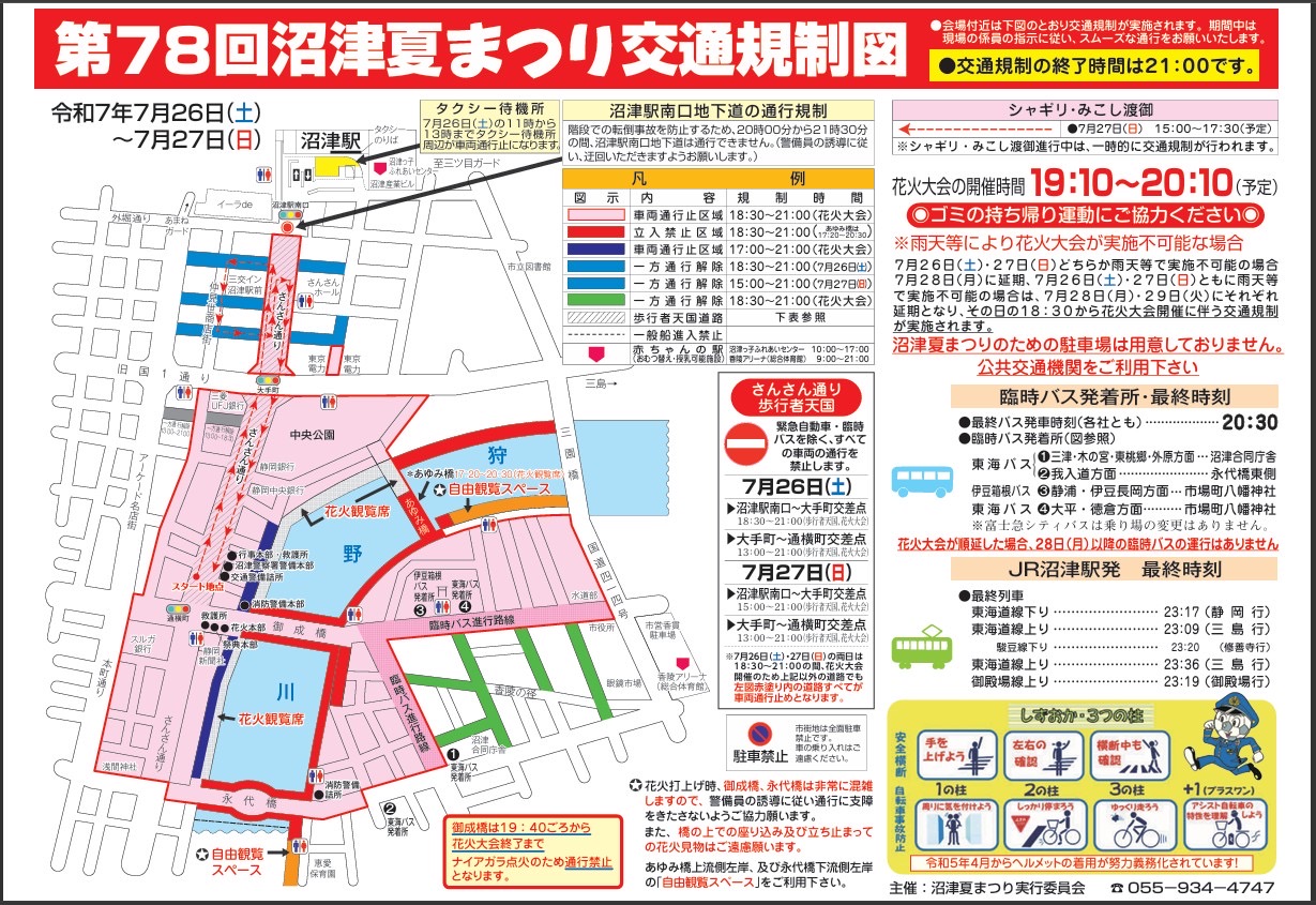 もうすぐ第78回沼津夏まつり。沼津観光ポータルを見たら交通規制図が載ってた。「たのしみだなー♪」とか思いながら、