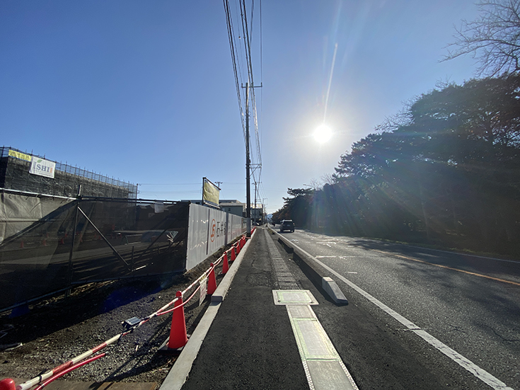 旧国道1号線。通称千本街道沿い、小諏訪のあたりで工事が進んでいる仮称フードストアあおき沼津西店。